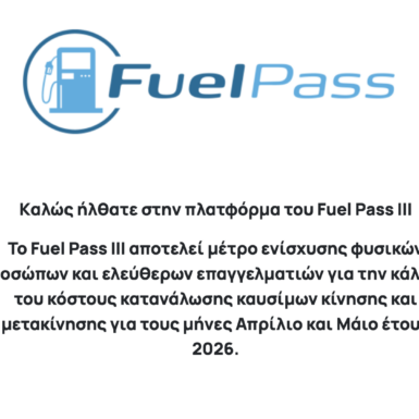 Fuel Pass 2026: Ποιοι το δικαιουνται, ποσα χρηματα δινει και πως γινεται η αιτηση Σε μια συγκυρία όπου το κόστος καυσίμων εξακολουθεί να επιβαρύνει σημαντικά τα νοικοκυριά, το Fuel Pass…...